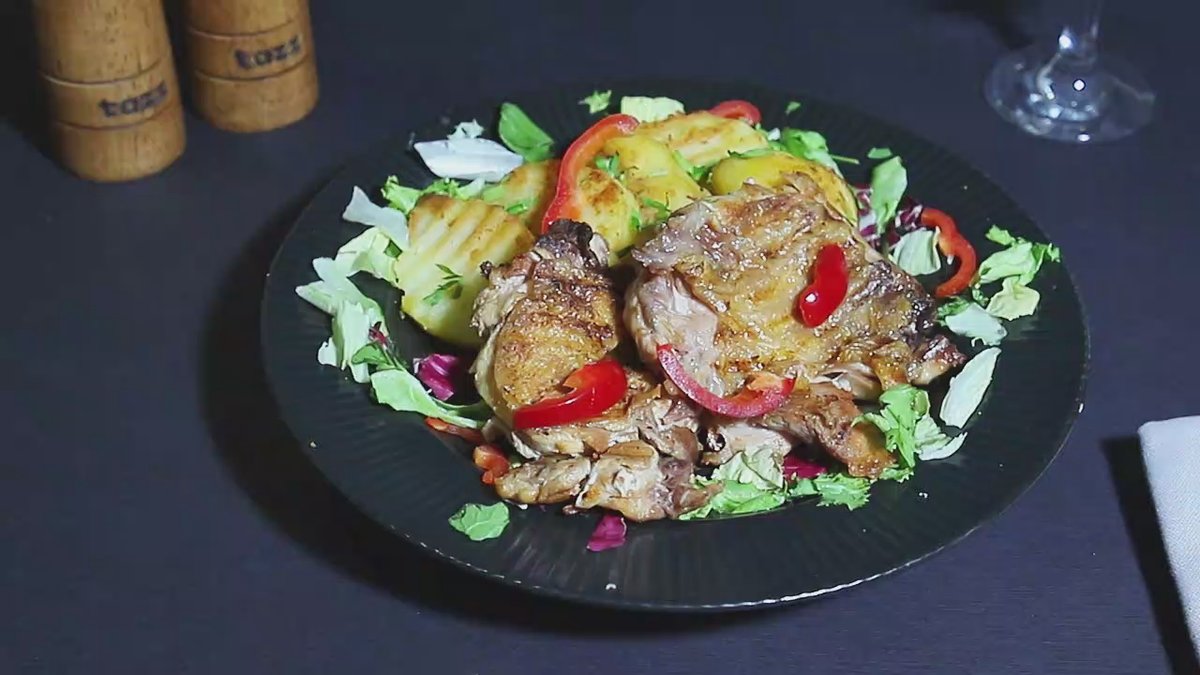 Pulpe de pui + garnitură + salată varză