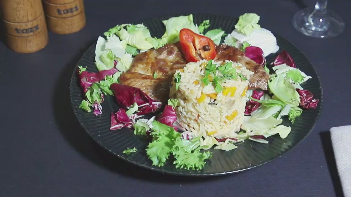 File de porc + garnitură + salată varză