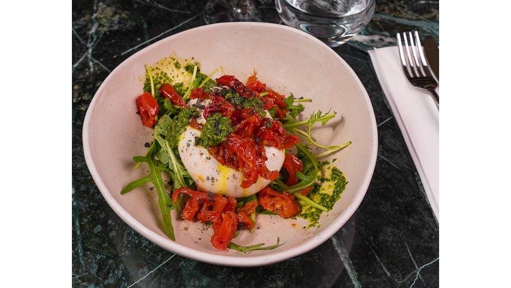 Burrata cu roșii uscate și pesto