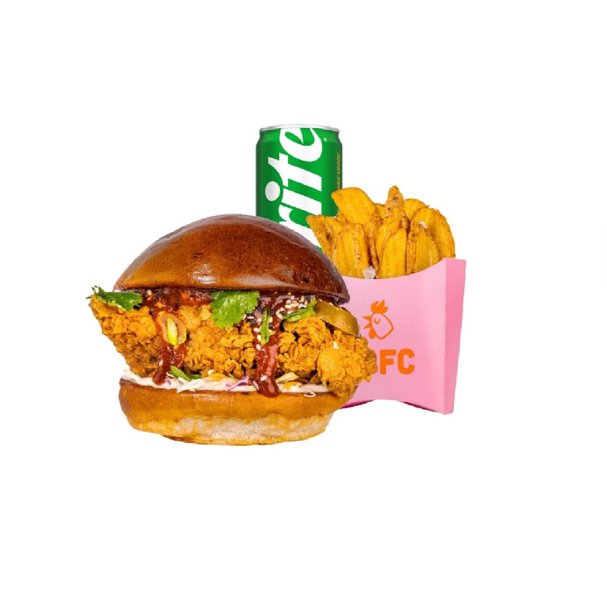 Menu | Spicy Korean Burger, Fries Crispers 130g, Soft Drink