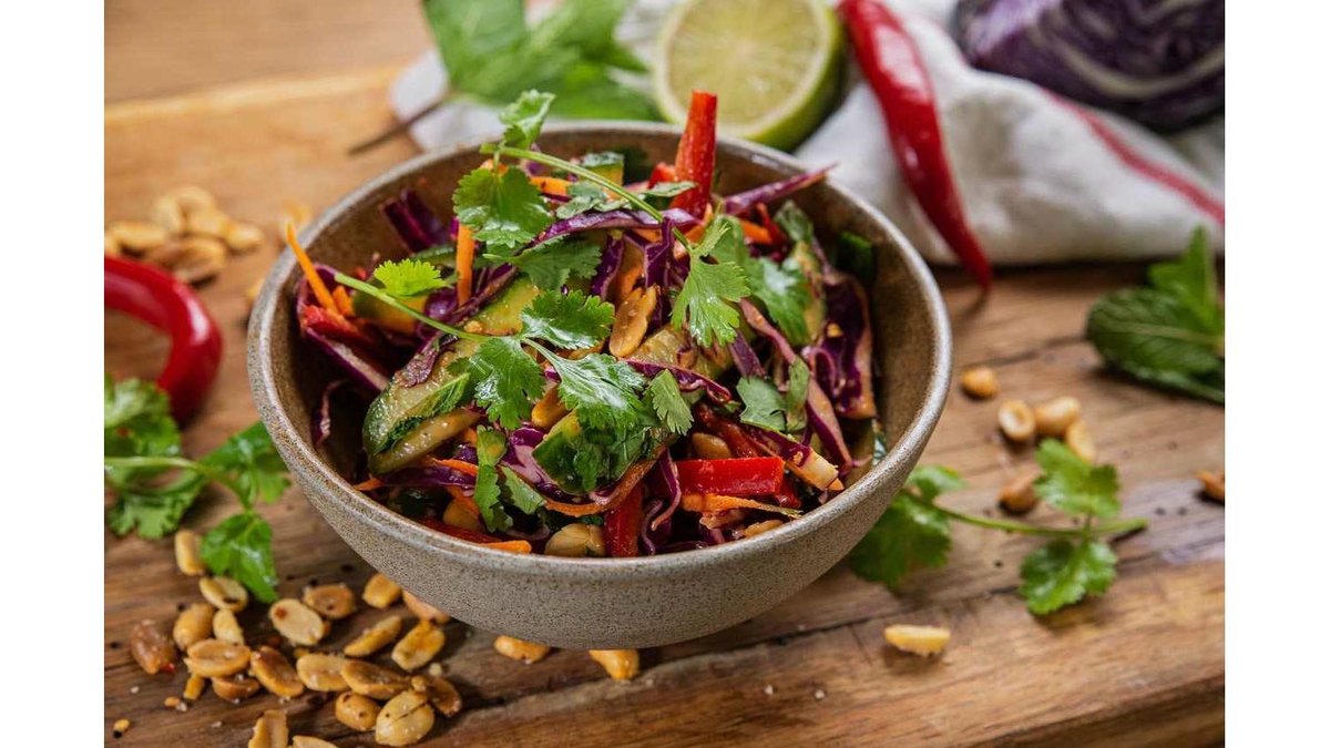 Salată crocantă în stil thailandez, ardei roșu, salota, morcov, mentă, coriandru & chilli roșu (200g)/ Crunchy thai-style salad with cucumber, red pepper, carrots, mint, coriander, red chilli (200g)