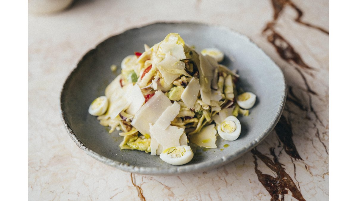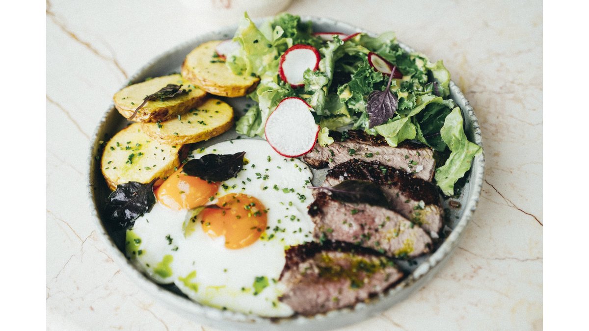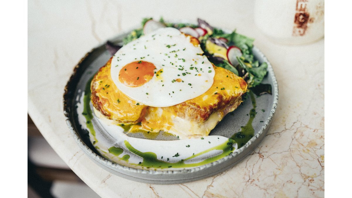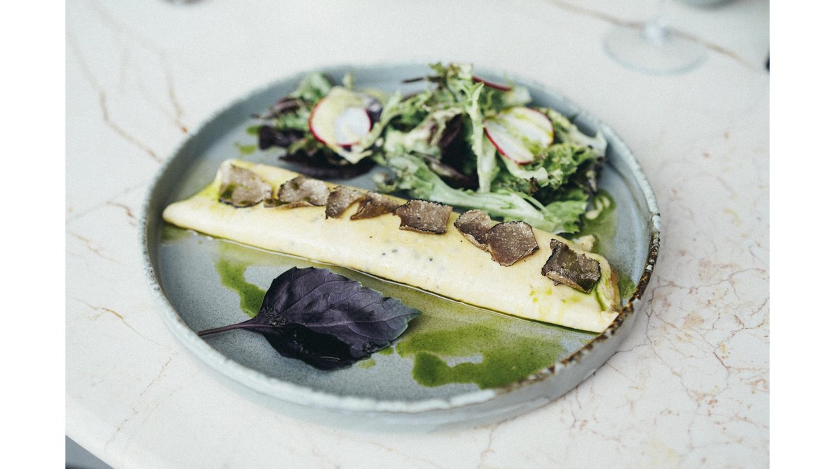 Scrambled eggs with truffle, bread with turmeric and sesame seeds