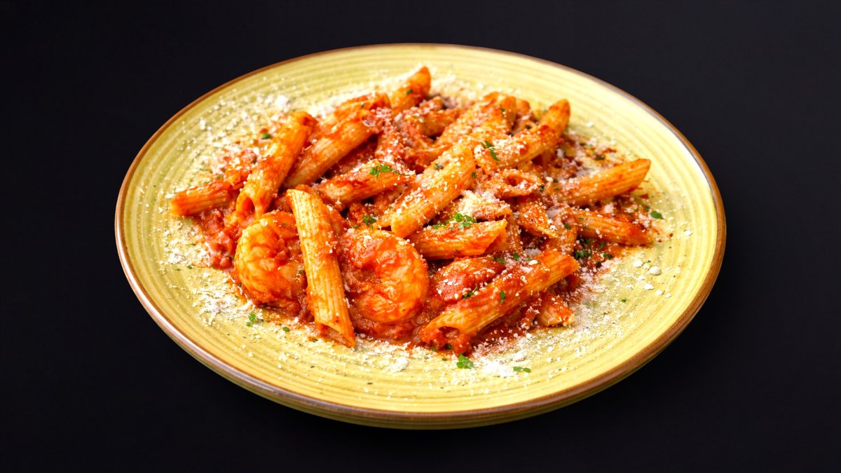 Paste, creveți, peperoncini, roșii cherry - 450g