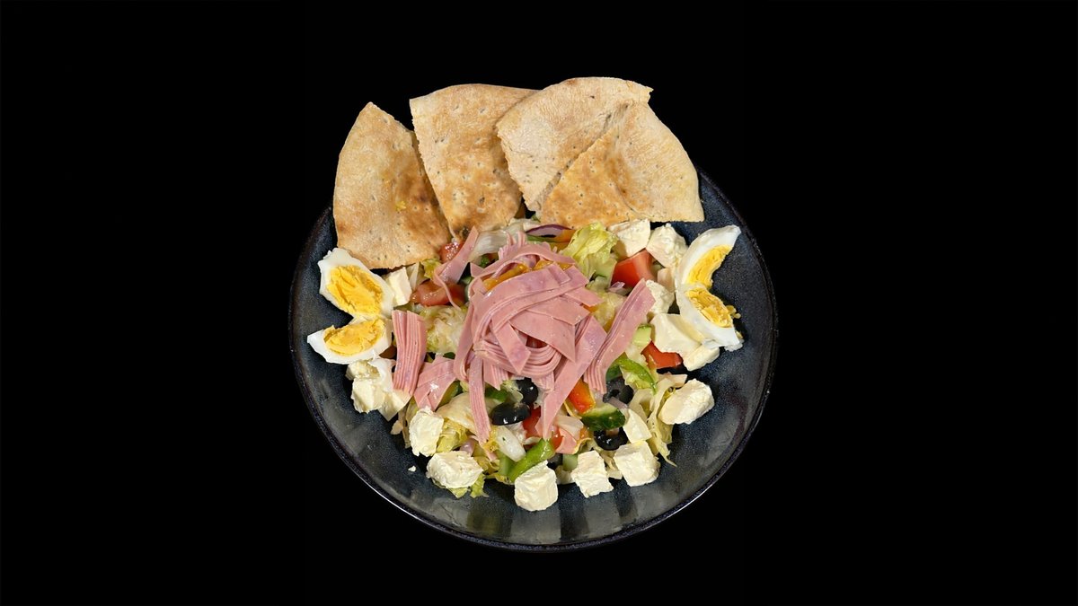 Roșii, castraveti, ardei, ceapa, ou fiert, salata, sunca, branza - 400g
