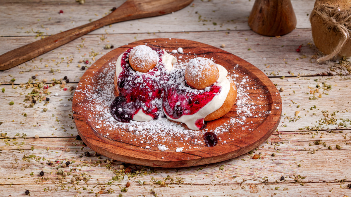 Papanași cu dulceata afine
