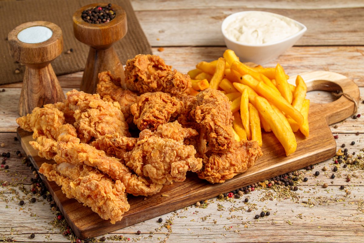 3 aripioare crispy, cartofi prajiti si sos la alegere