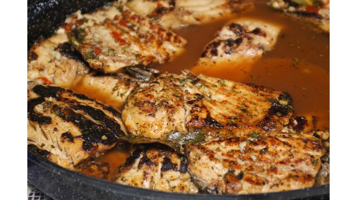 Dorada cu vin si capere la tigaie
