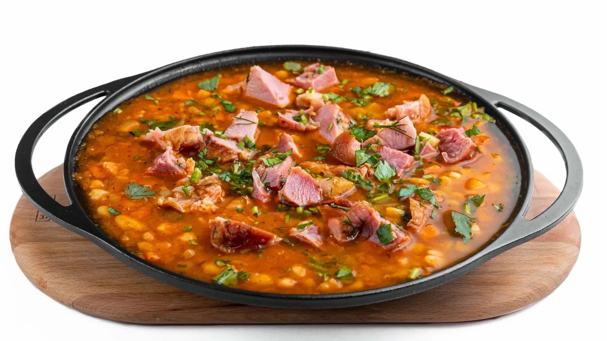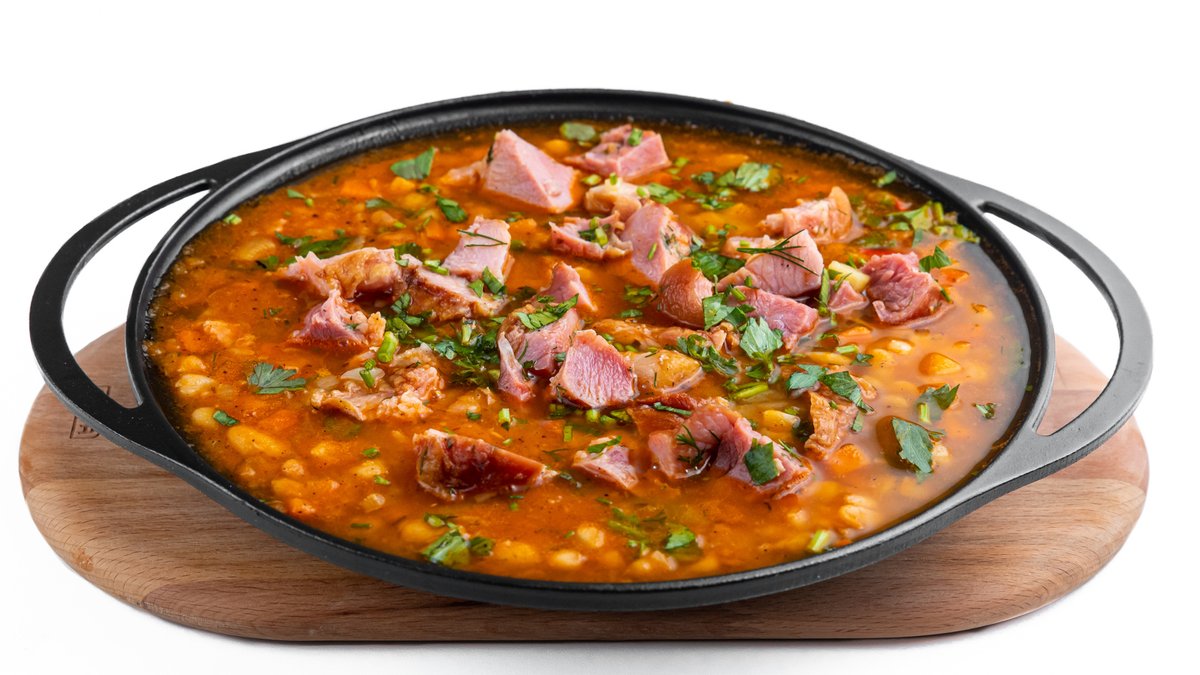 Afumătură, kaizer, ceapă, fasole, morcov, bulion, țelină, pastarnac, suc de roșii, condimente 4 portii - 1,6 kg