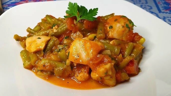Mâncare de fasole verde cu pui
