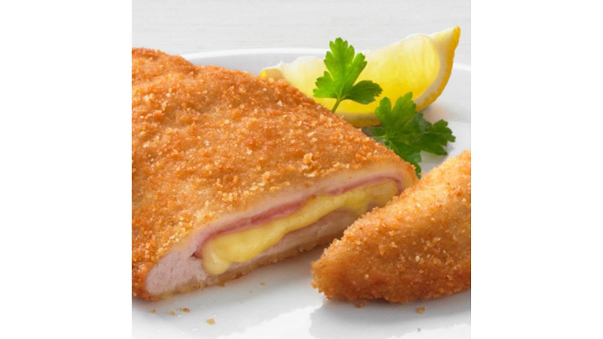 Piept de pui, cașcaval, șuncă, ouă, pesmet, condimente 4 porții – 600 g