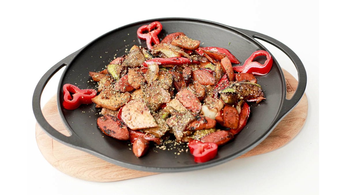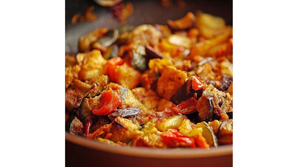 Ciuperci, dovlecei, vinete, ardei kapia, ardei gras, ceapă și ulei de măsline 4 porții – 600 g