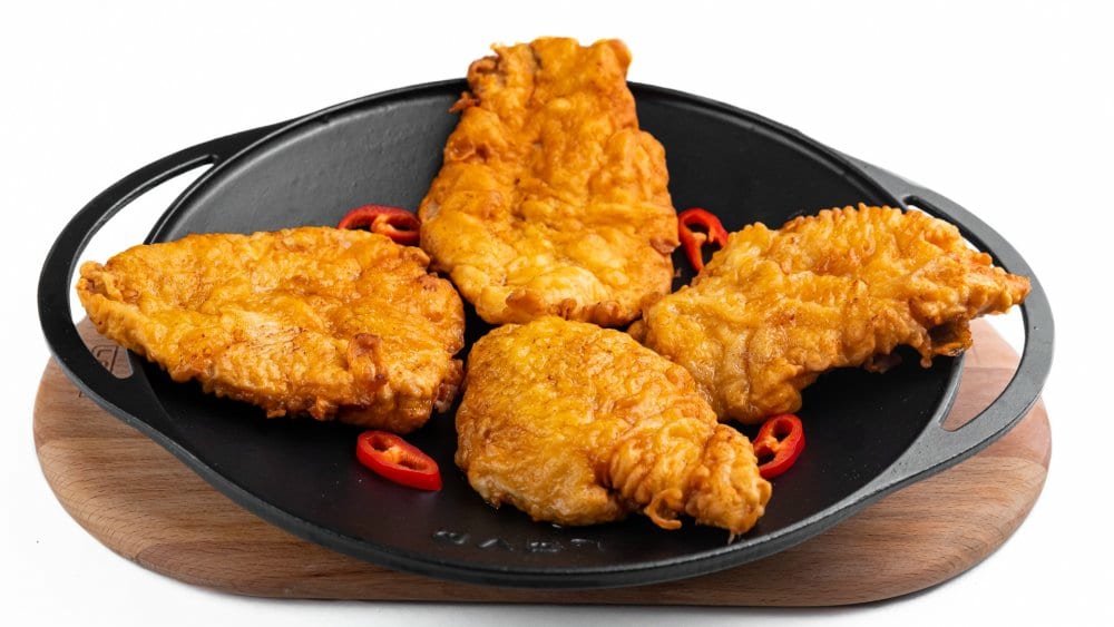 Piept de pui, ouă, apă minerală, făină, pesmet, condimente 4 porții – 600 g
