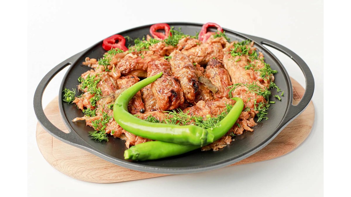 Amestec pulpă porc și pulpă vită, ceapă, orez, bulion, varză murată, condimente 4 porții – 900 g