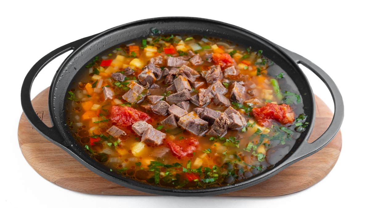 Pulpă de vită, cartofi, ceapă, ardei gras, ardei kapia, morcov, țelină, pastarnac, bulion, borș, mazăre, fasole verde, condimente 4 portii - 1,6 kg