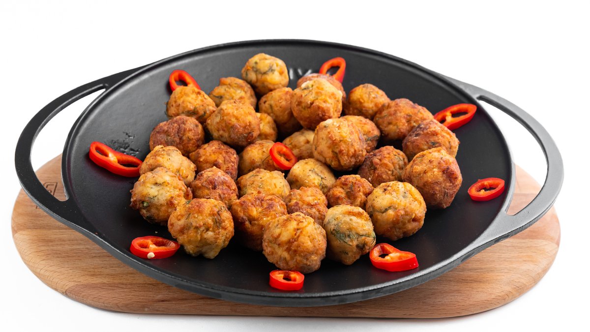 Bulete cașcaval, chiftele pui, chiftele porc, ciuperci pane, cartofi prăjiți 4-6 portii - 1600 g