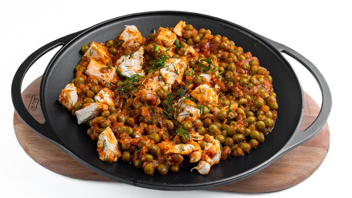 Fasole verde, pui, usturoi, sos de roșii, mărar, sare, piper 4 portii - 800 g