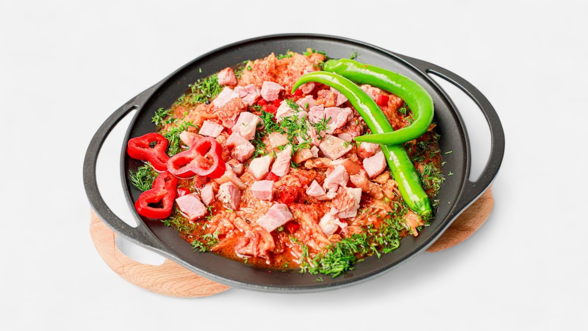 Pulpă de porc și pulpă de vită, ceapă, ardei kapia, ardei gras, morcov, țelină, pastarnac, borș, ouă, orez, bulion, condimente 6 porții – 2,4 kg