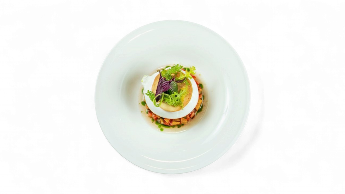 Burrata cu texturi de roșii