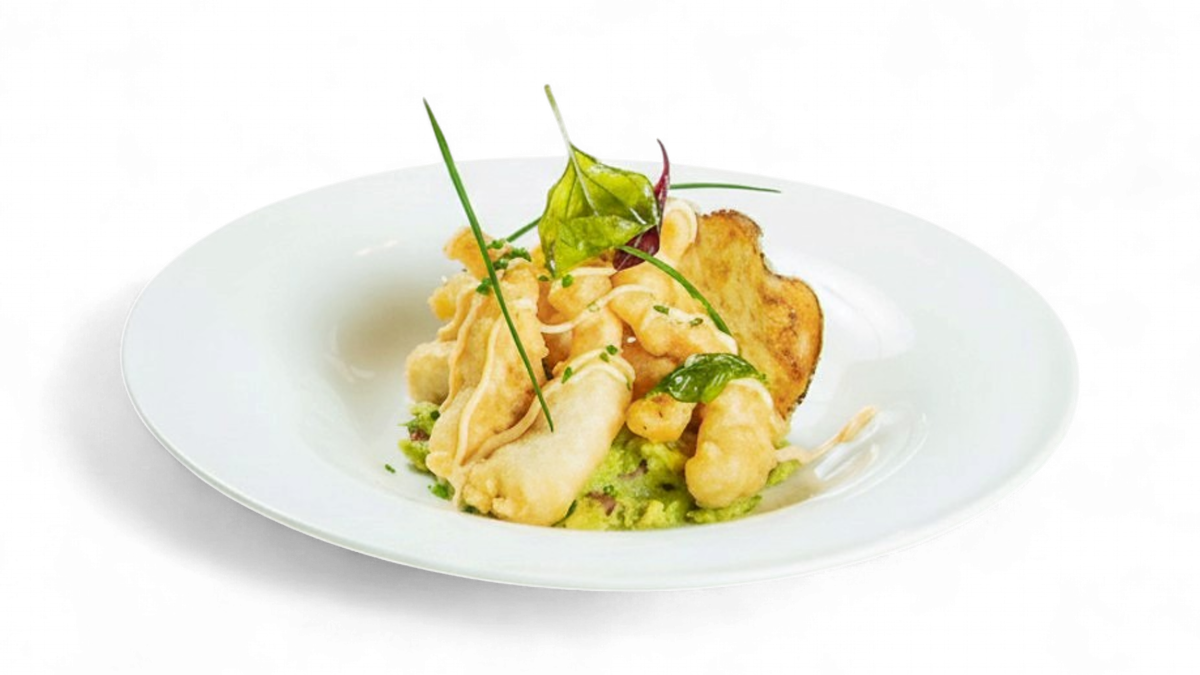 Baby calamar crocant cu sos de iaurt și aromă de usturoi tânăr