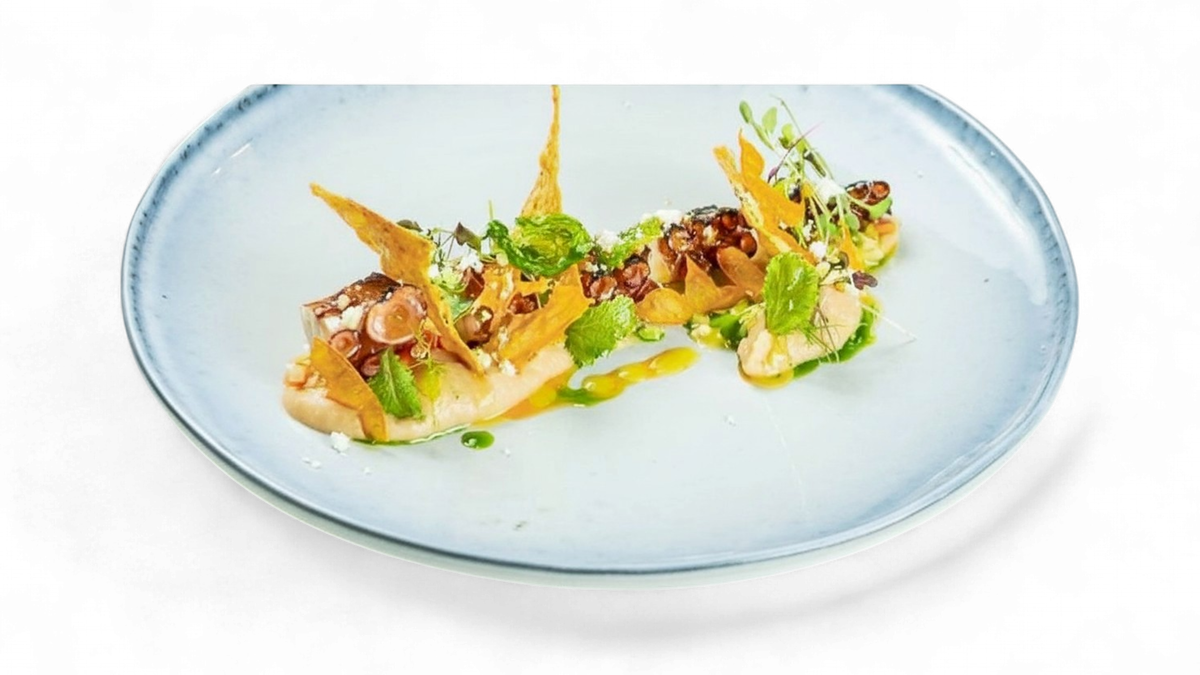 Caracatiță cu crema de fasole și dressing de lămâie