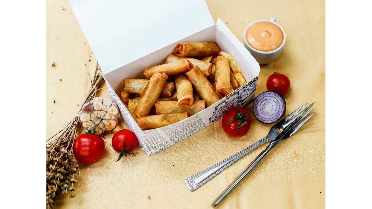 Rulouri semipreparate din aluat umplute cu legume. Conțin 46% legume (varză, fasole verde, morcov, ceapă și ciuperci) 150 g