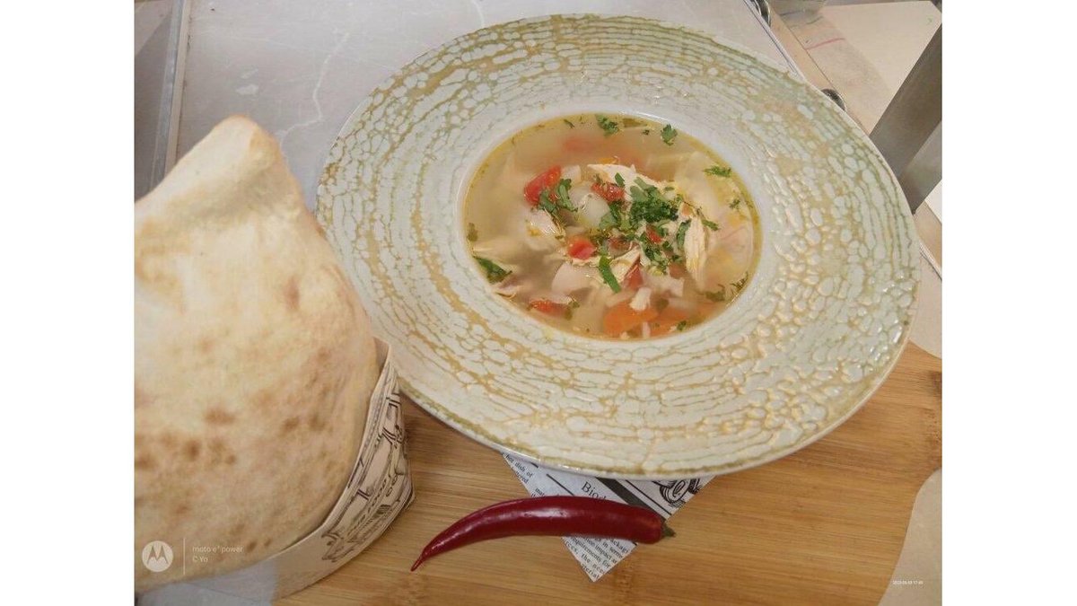 Paste proaspete de casă, sos de roșii, piept de pui, bacon, ceapă, roșii cherry ,ardei si usturoi gratinate în cuptorul cu lemne cu mozzarella .