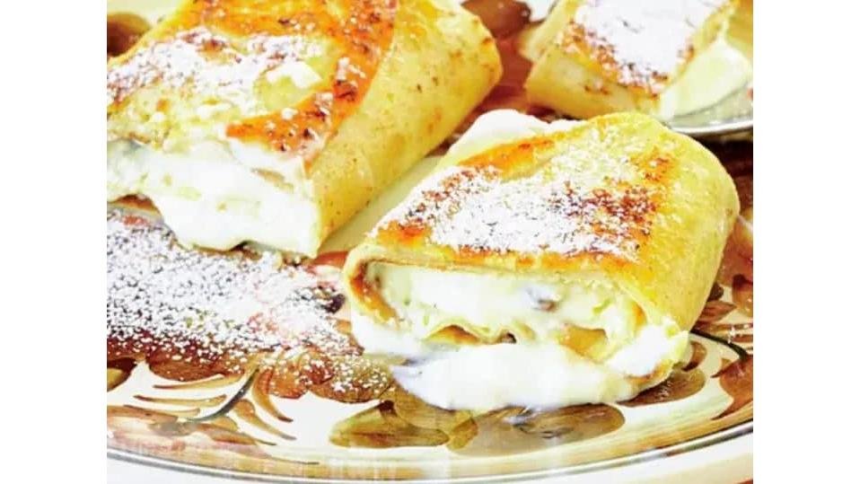 aluat de clatite traditional, umplutura din branza dulce,stafide rom si vanilie