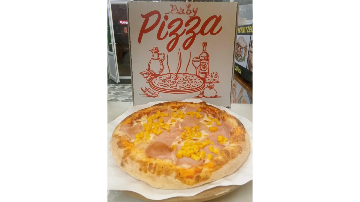 aluat de pizza, sos de rosii ,mozzarella,sunca si porumb dulce