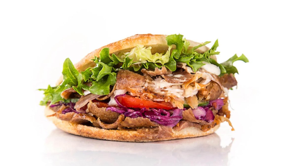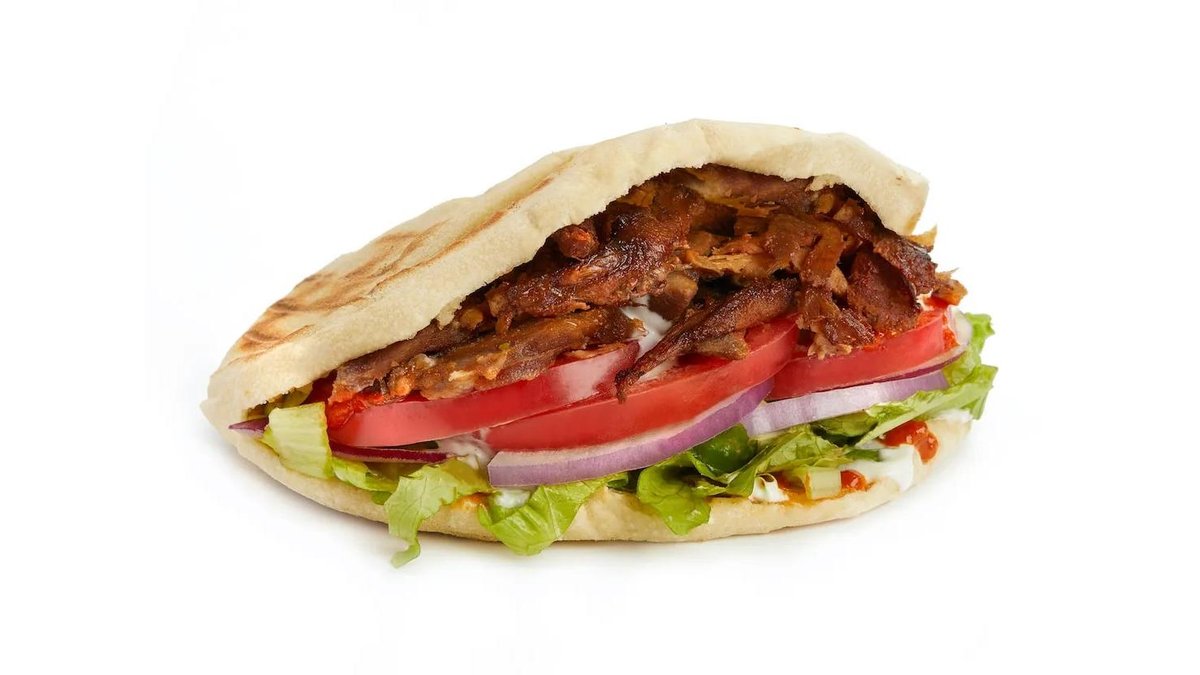ALUAT DE PIZZA 200 G COPT IN CUPTORUL CU LEMNE , umplut cu piept de pui marinat in condimente speciale, sos de maioneza cu usturoi, sos de rosii ,salata de varza, castraveti murati, ceapa, rosii si cartofi prajitiI.