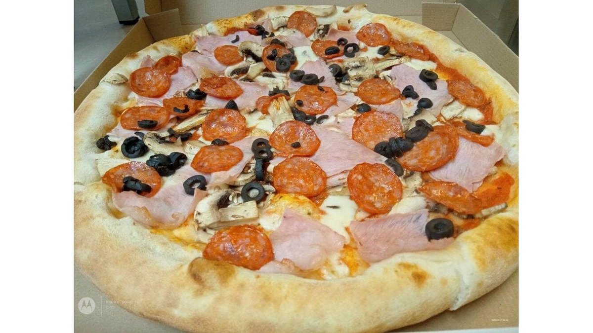 aluat de pizza ,sos de rosii, mozzarella si salam Pepperoni . comanzi 1 de 42 cm si primesti pe a doua de 32 cm