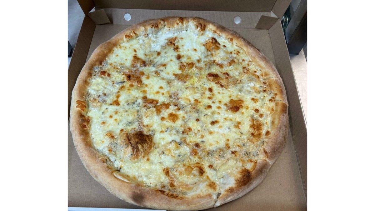 O super oferta de decembrie , cu 3 pizza : 1 quattro formaggi de 32 cm , 1 quattro staggioni de 32 si 1 prosciutto funghi de 24 cm .