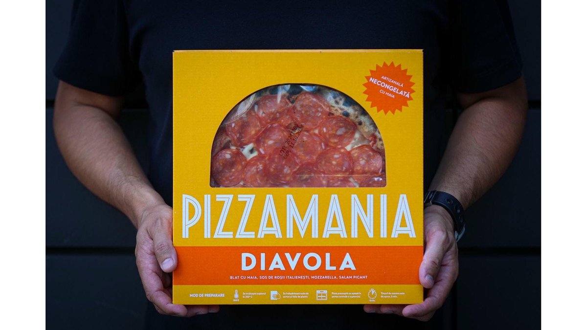 Pizza artizanală pre-coaptă, necongelată, cu blat din maia și făină intermediară, sos de roșii italienești, mozzarella, salam picant - 440g. PizzaMania aduce acasă gustul autentic. Doar câteva minute la cuptor și e gata.