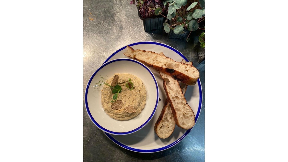 Hummus, pesto făcut în casă și focaccia cu maia