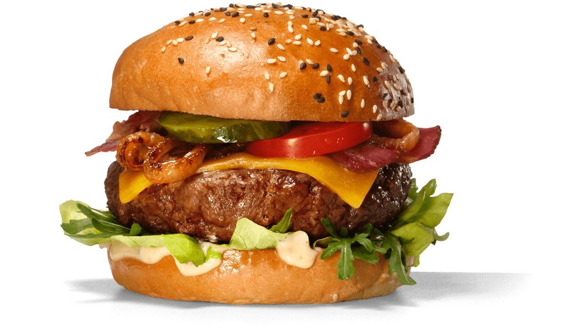 Carne Vita Black Angus, chifla artizanala cu seminte, bacon, sosuri , ceapa caramelizata, castraveti murati, salata - 420g