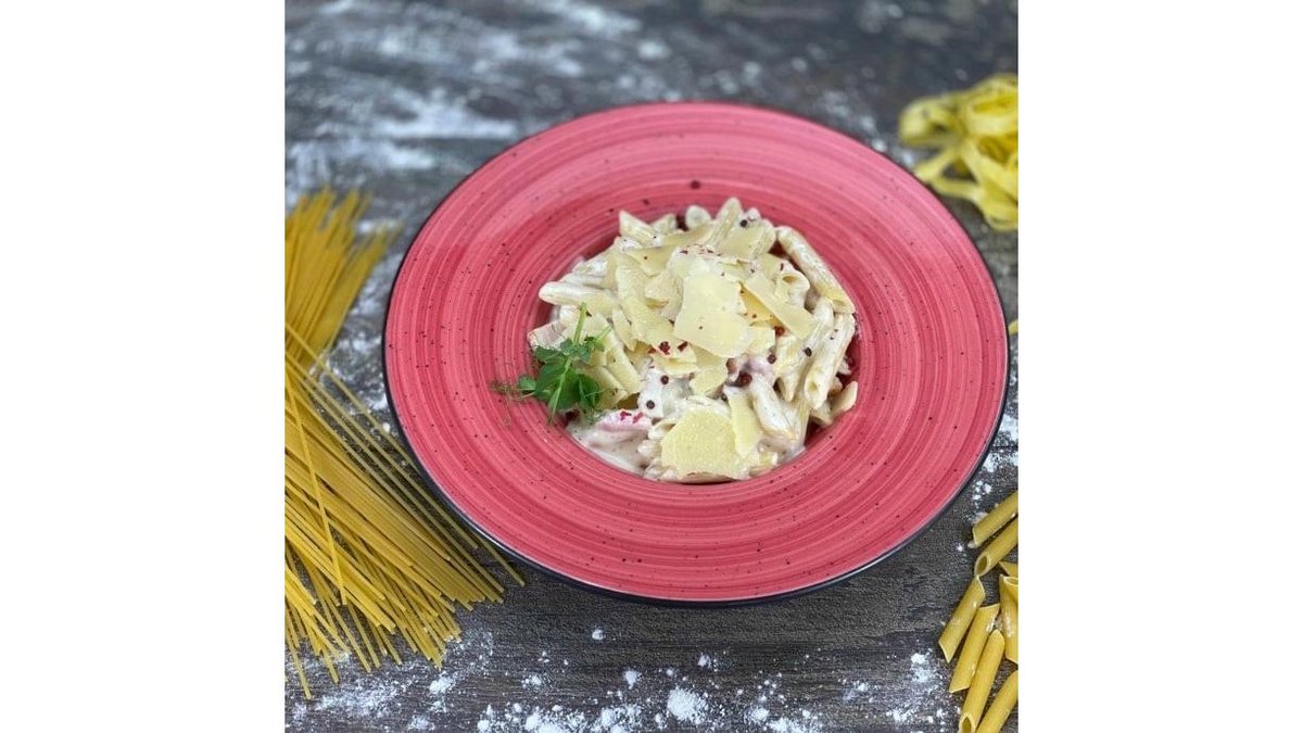 Crema de gatit, mozzarella, topping pizza, galbenus ou, bacon, parmezan. Ingrediente : BLAT DE PIZZA (Faina, sare, ulei floarea soarelui, zahar) SOS CARBONARA 30g (smantana de gatit : apa , uleiuri vegetale din samburi de palmier floarea soarelui si soia ,lapte si lapte praf degresat maltodextrine , emulgatori :E472e lecitina de soia , E471, agenti de ingrosare : E412 si E410, stabilizator E339ii. galbenus de ou , sare ,piper.MOZZARELLA 70g (lapte, sare, cheag microbian, corectori de aciditate, acid citric, acid lactic, culturi lactice) BACON 40g ( piept de prc fara os, pulpa de porc ,amidon ,apa, sare , zaharuri : dextroza , stabilizatori : di si tripolifosfat de sodiu, antioxidanti : citrat de sodiu , agent gelatinizant : caragenan, arome colorant: suc de ridichie, conservant : nitrit de sodiu si acetat de sodiu . BRANZA ITALIANA 10g (lapte, sare , cheag, lysozym din ou.