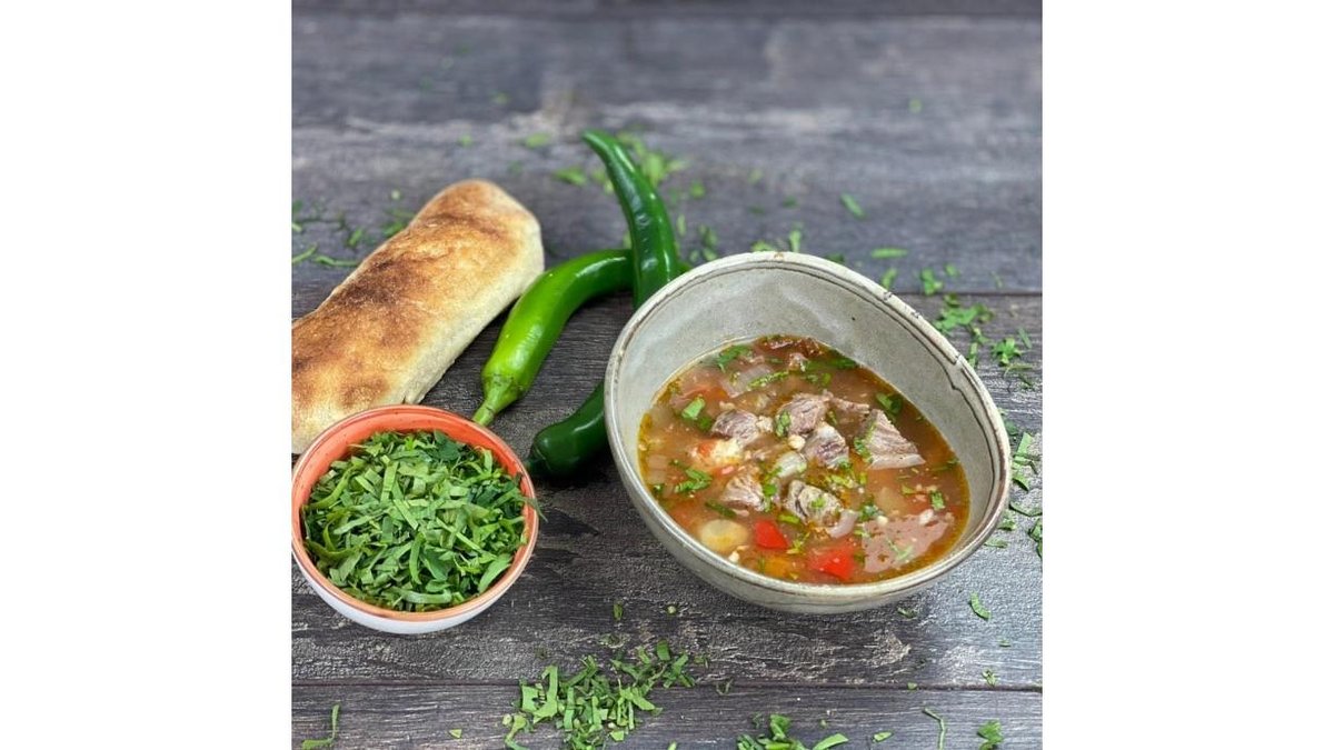 350gr: se serveste cu painica mica in cuptor cu lemne. Ingrediente: apă, rasol vită 100g(origine RO), cartofi 50g ,ceapă23g, morcovi 23g, ardei gras 20g, țelină 15g, roșii cuburi 30g(roșii decojite, sos de roșii, corector de aciditate: acid citric)), borș(ingrediente: apă, tărâțe de grâu(origine UE si din afara UE, făină de malț), leuștean sau pătrunjel(in funcție de sezon). Alergeni: gluten, țelină. produs intr-o unitate unde se folosesc: mustar, susan.