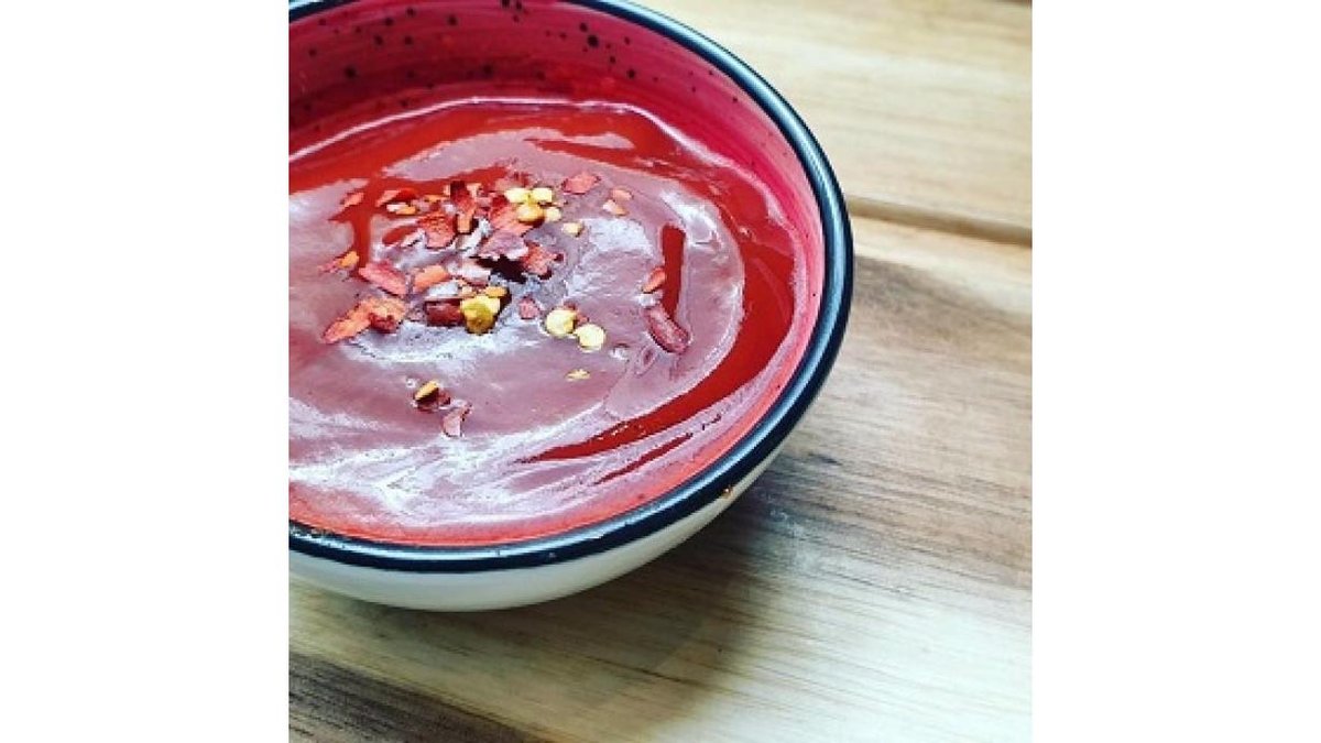 Ingrediente: apă, piure de roșii(18%), pastă de roșii(5%), ulei de floarea soarelui(2%),amidon, sare, zahăr, ceapă, pastă de ardei, piper negru, usturoi. Crutoane 40g (ingrediente: făină de grâu, apă, drojdie, sare iodată, gluten din grâu) Alergeni: gluten, produs intr-o unitate unde se folosesc: mustar, țelină, susan.