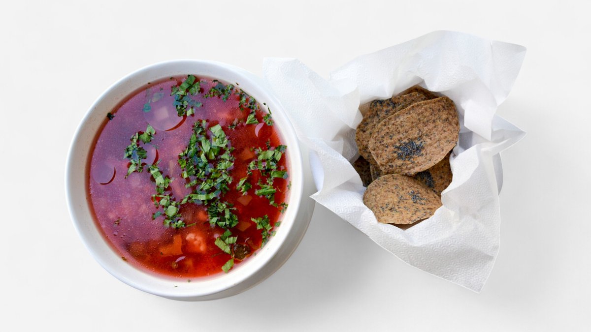 Bors raw de sfecla sau bors de legume. Mazare colorata cu sos alb si morcovi marinati. Pofta buna!