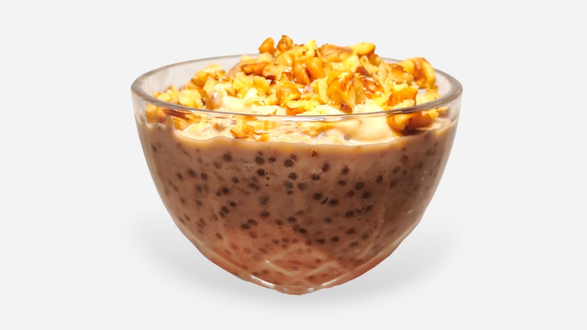 Chia hidratată lent în lapte de migdale cremos, preparat în casă, pentru o textură fină și gustoasă. Servită cu fructe proaspete și zemoase, plină de fibre, nutrienți și energie curată. Un desert-lejer sau mic dejun hrănitor, care îmbină răsfățul cu echilibrul ingrediente - Migdale, smochine, curmale, miere, stafide, vanilie, măr, chia, portocale, fructe sezon