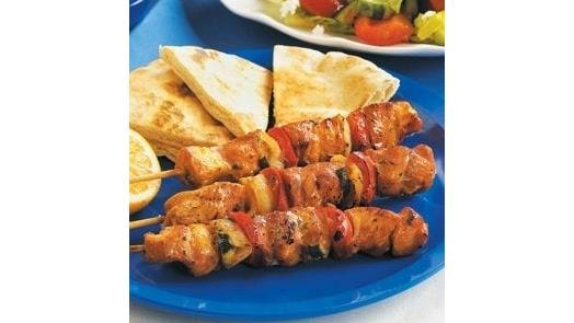 Souvlaki de pui/cartofi wedgess/lipie