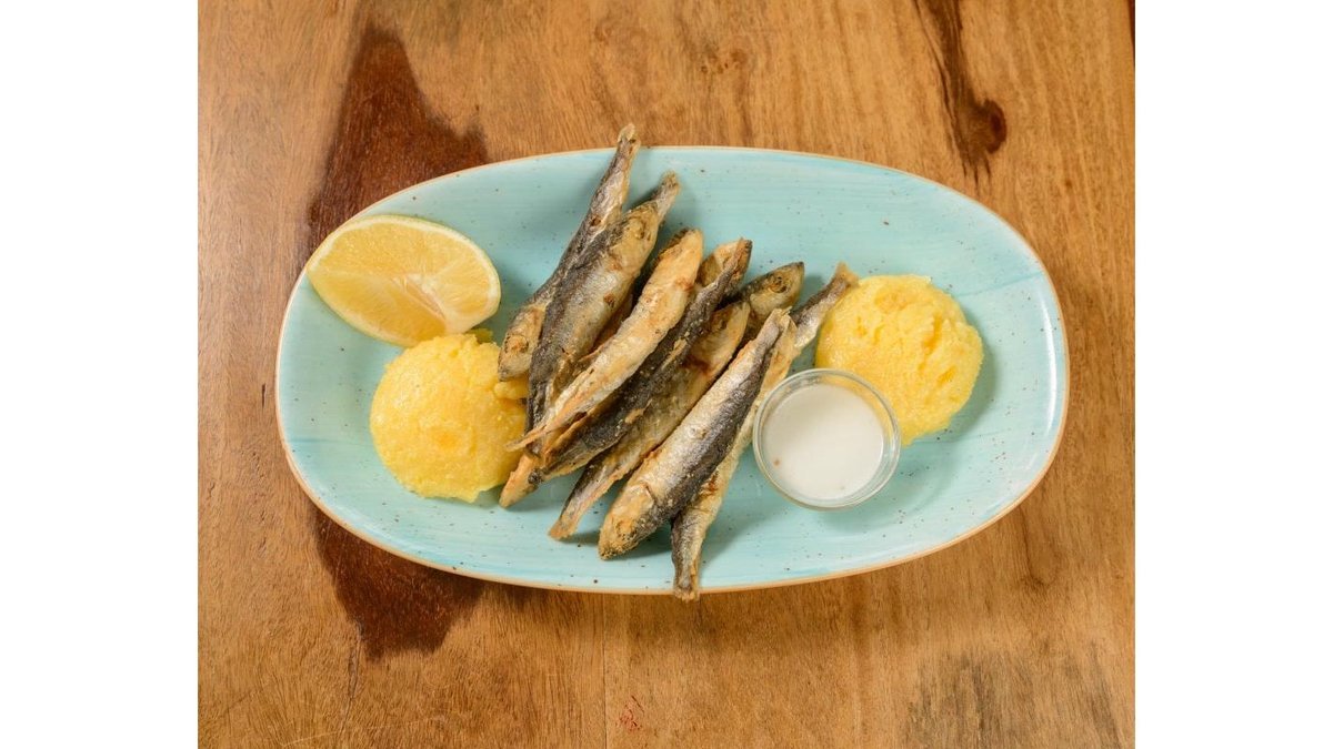 Hamsii proaspete, mămăligă și usturoi