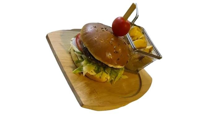 Vită, cedar, maioneză, salată, castraveți murați, roșii, ceapă, cartofi wedges 400 g