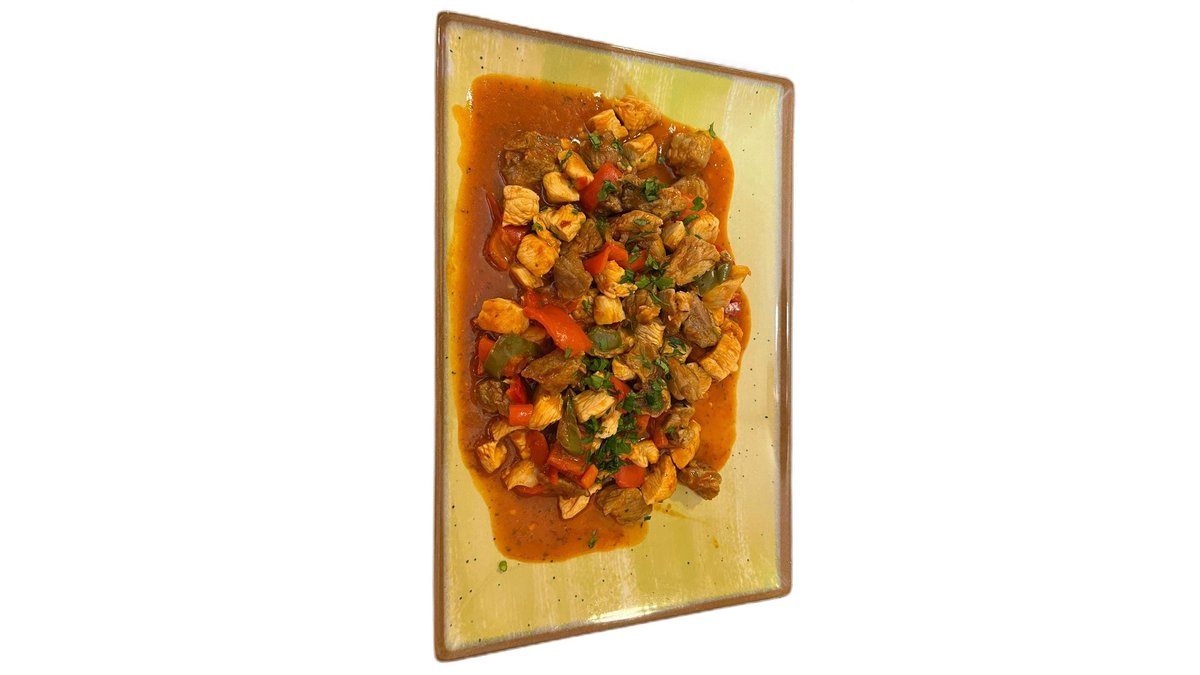 Porc, pui, ardei, ceapă, ardei iute 350 g