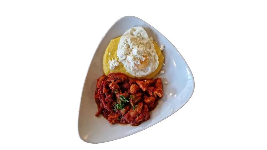 Porc, cârnați, bacon, ciuperci, ou, brânză, mămăligă 500 g