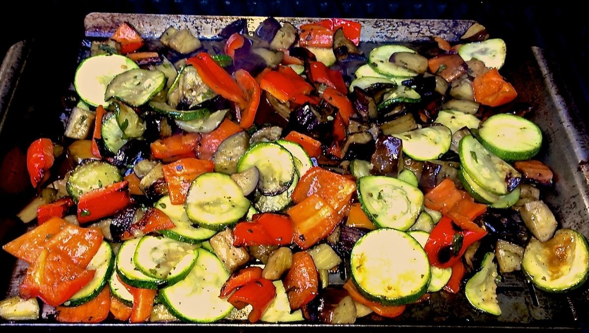 Legume la grătar ciuperci, dovlecel, ceapă, morcov, ardei