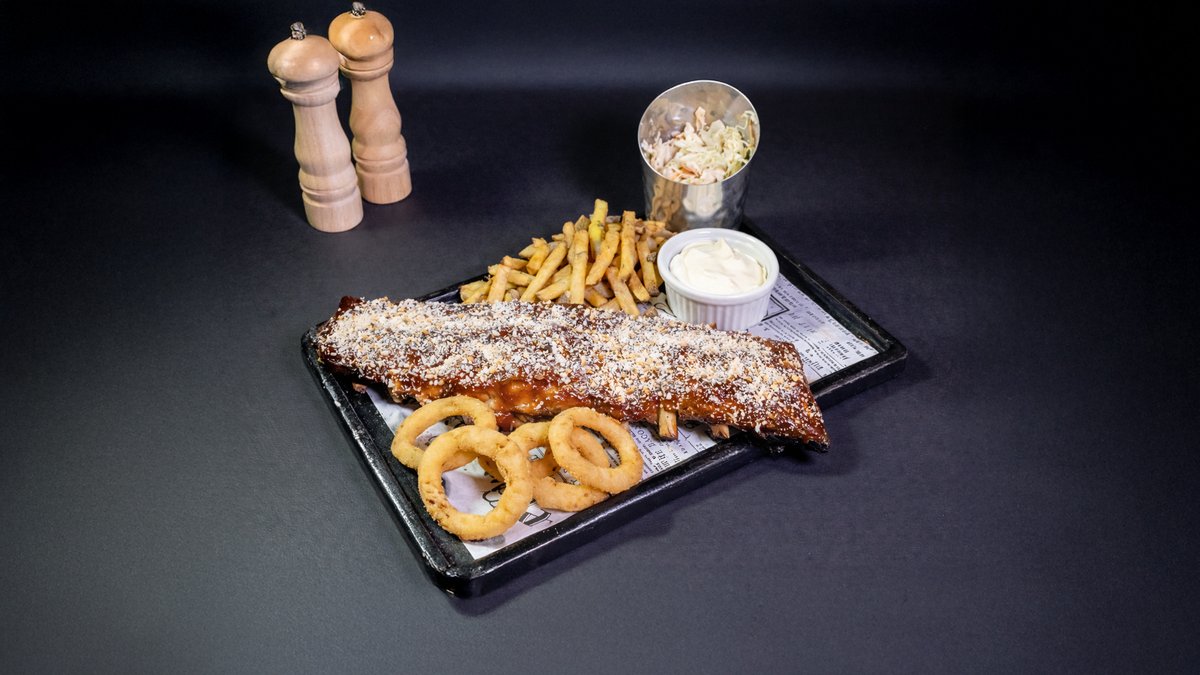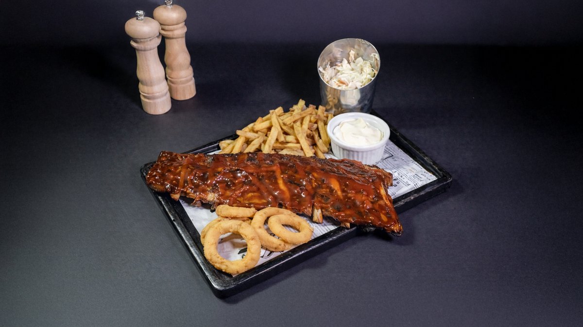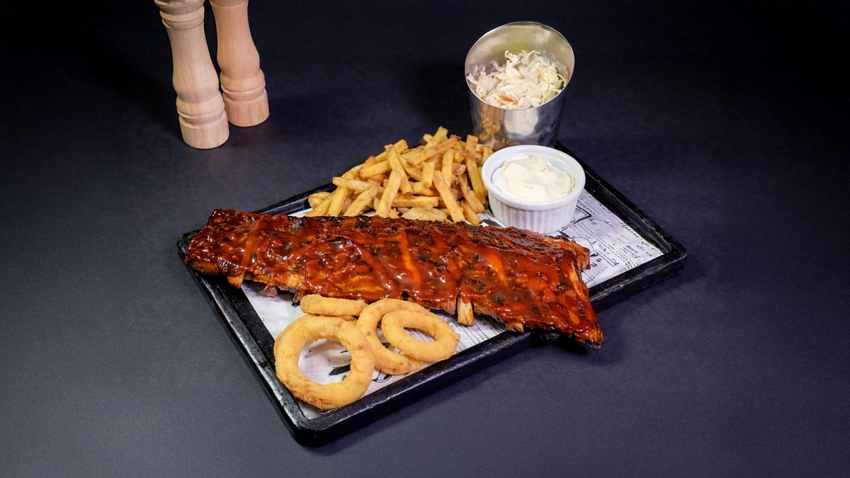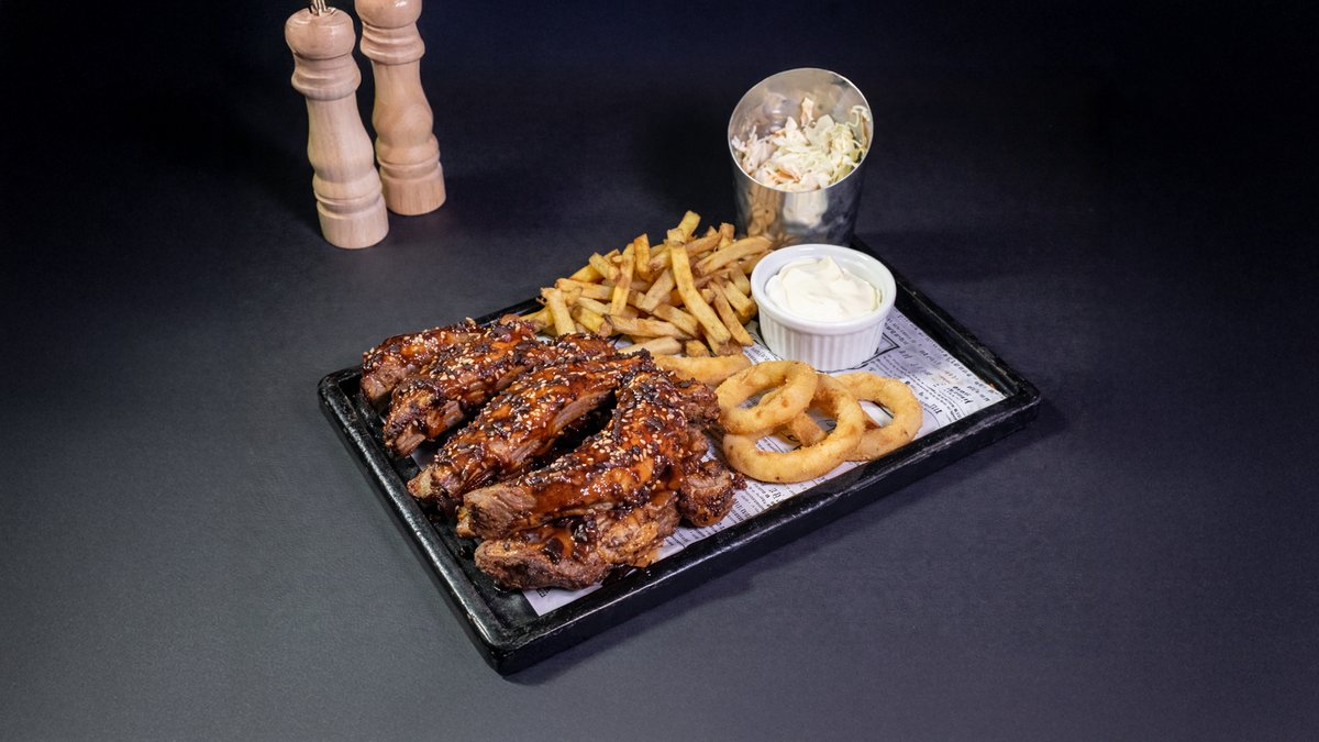 Dulceață mierii și gustul incofundabil al muștarului aduc pe masă o porție de coaste ce ne încântă papilele gustative alături de salată coleslaw, cartofi prăjiți și onion rings 900 gr