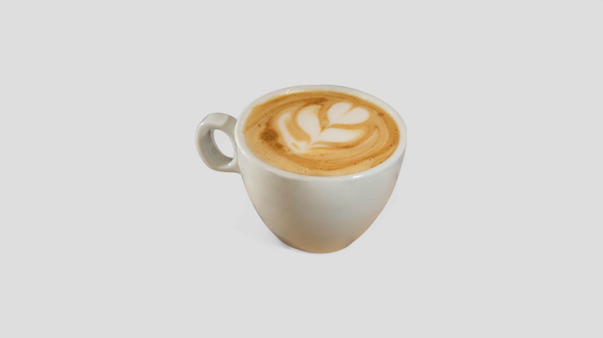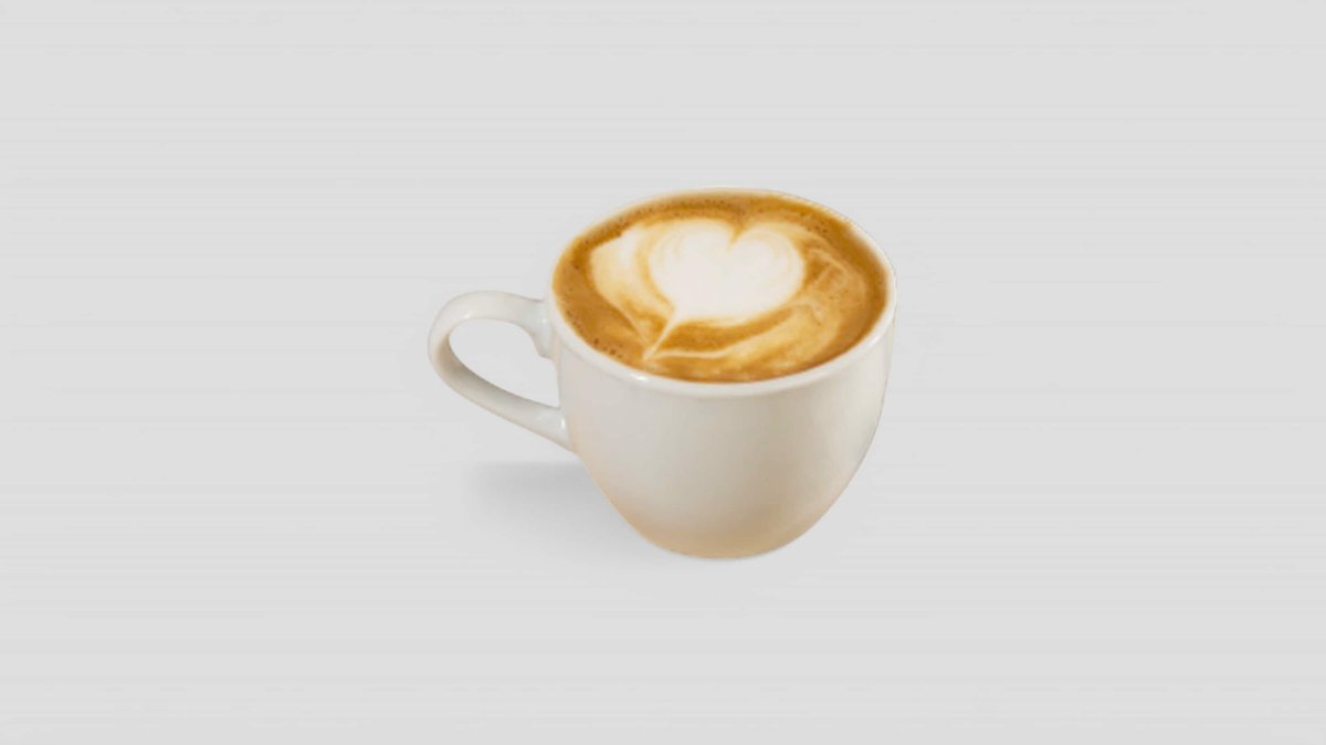 Espresso, lapte fierbinte, acoperit cu un strat consistent de spuma 250 ml Poza produsului este cu carater informativ.