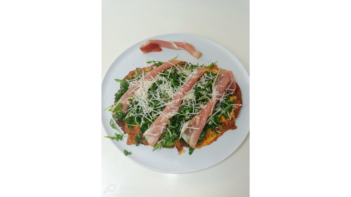 Piept de pui, sos de legume, mozzarella , cașcaval cheddar,rucolă , proschito crudo
