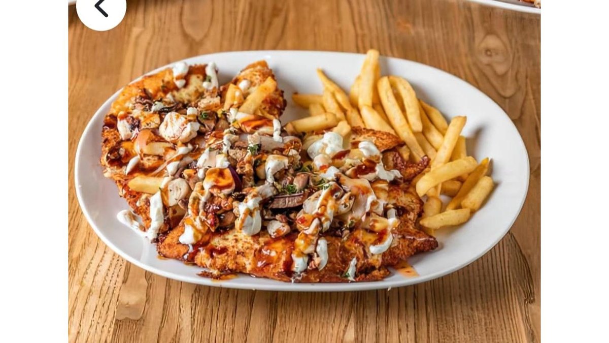 File de porc , sos legume, mozzarella,bacon , ceapă roșie, usturoi