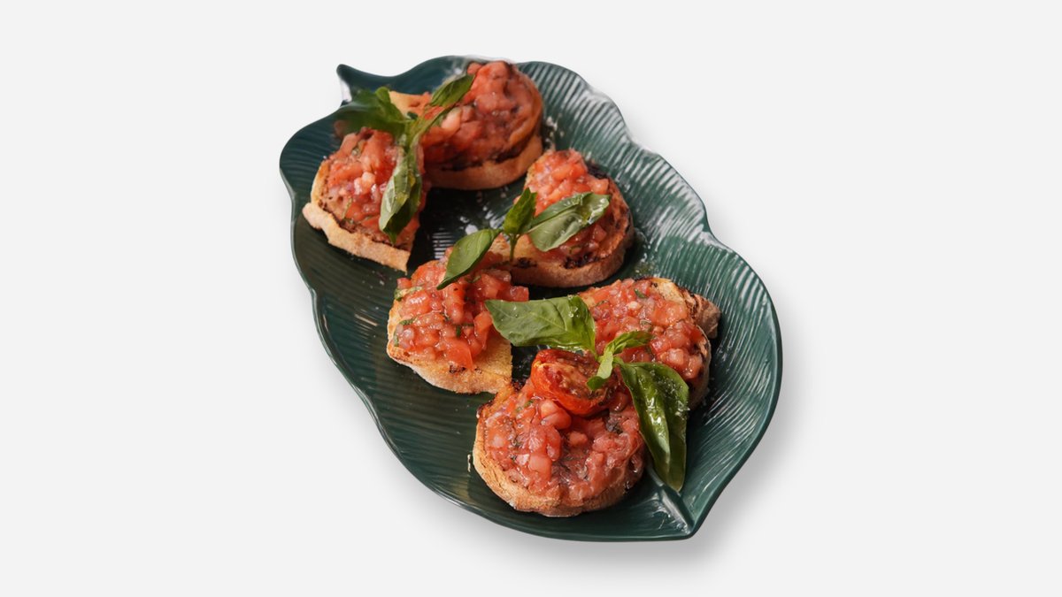 Bruschetta Ca pe vremuri. Roșii inimă de bou, ceapă roșie, busuioc și oregano